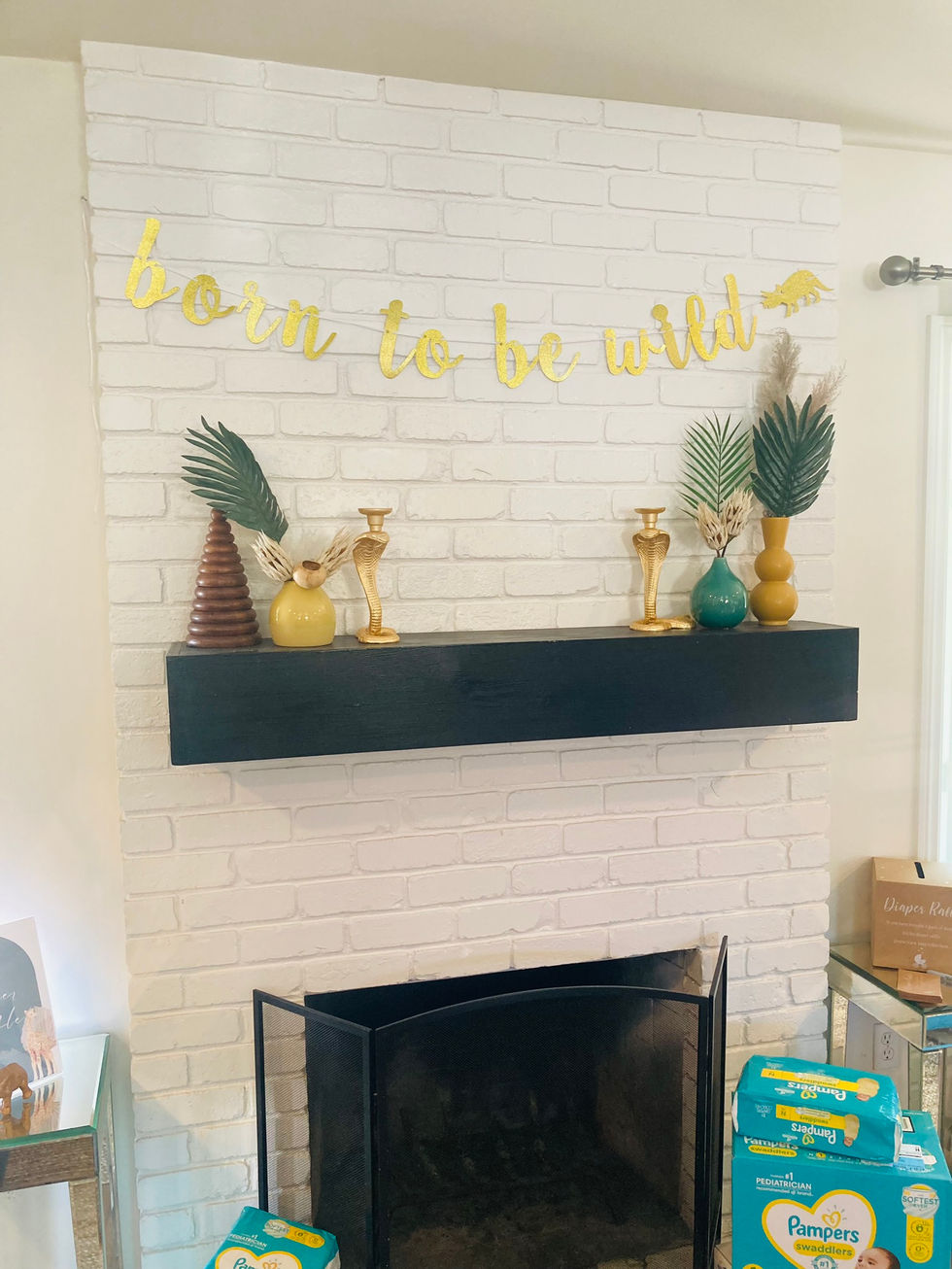 This baby shower embraced a Born to Be Wild jungle safari theme, creating a lush and lively setting to celebrate a growing family. Styled with natural textures and vibrant tones, the event featured a show-stopping balloon arch in earthy greens and neutrals, paired with boho wicker chairs and a styled mantel adorned with safari-inspired decor. Thoughtful seating arrangements and wild-themed accents brought the jungle to life, making for a fun, stylish, and unforgettable celebration under the sun.